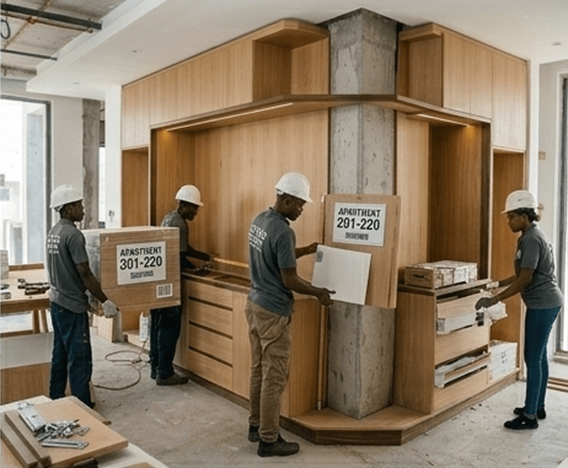 Scope: Modular kitchens and wardrobes across multiple units.